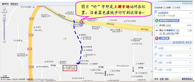 7、如果是坐火车直达惠州火车站(或称火车北站),可乘坐208、202、29路公共汽车,在上排市场站下车,穿过上排市场路,走路10分钟左右,斜对面就是上排半岛线上官网(中国)官方网站宿舍。